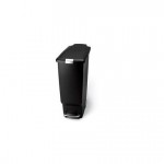 This trash bin is about 25 inches tall, 10 inches wide, and 19 inches deep. The bin is slightly wider near the top and narrower at the bottom – but not so much that it would become unstable. The mouth of the bin is the perfect size for a standard kitchen garbage bag. It is just wide enough that the bag stretches slightly and I have never had a problem with the bag slipping off. The outside of the bin is a matte black plastic with a silver (faux stainless steel) handle and step. This bin would look good in a kitchen with either black or stainless steel appliances.